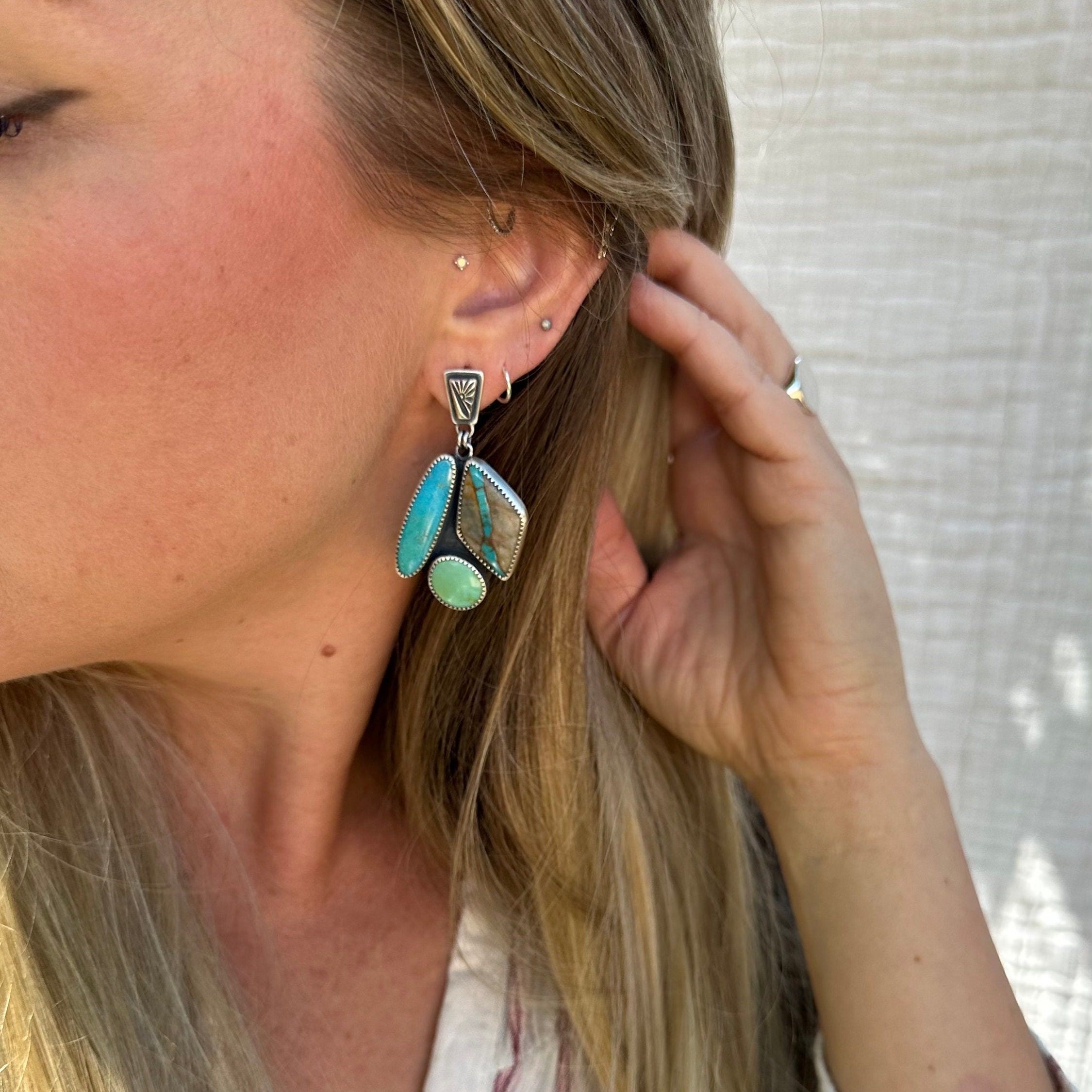 The Lucidity Turquoise cluster earrings are a statement!