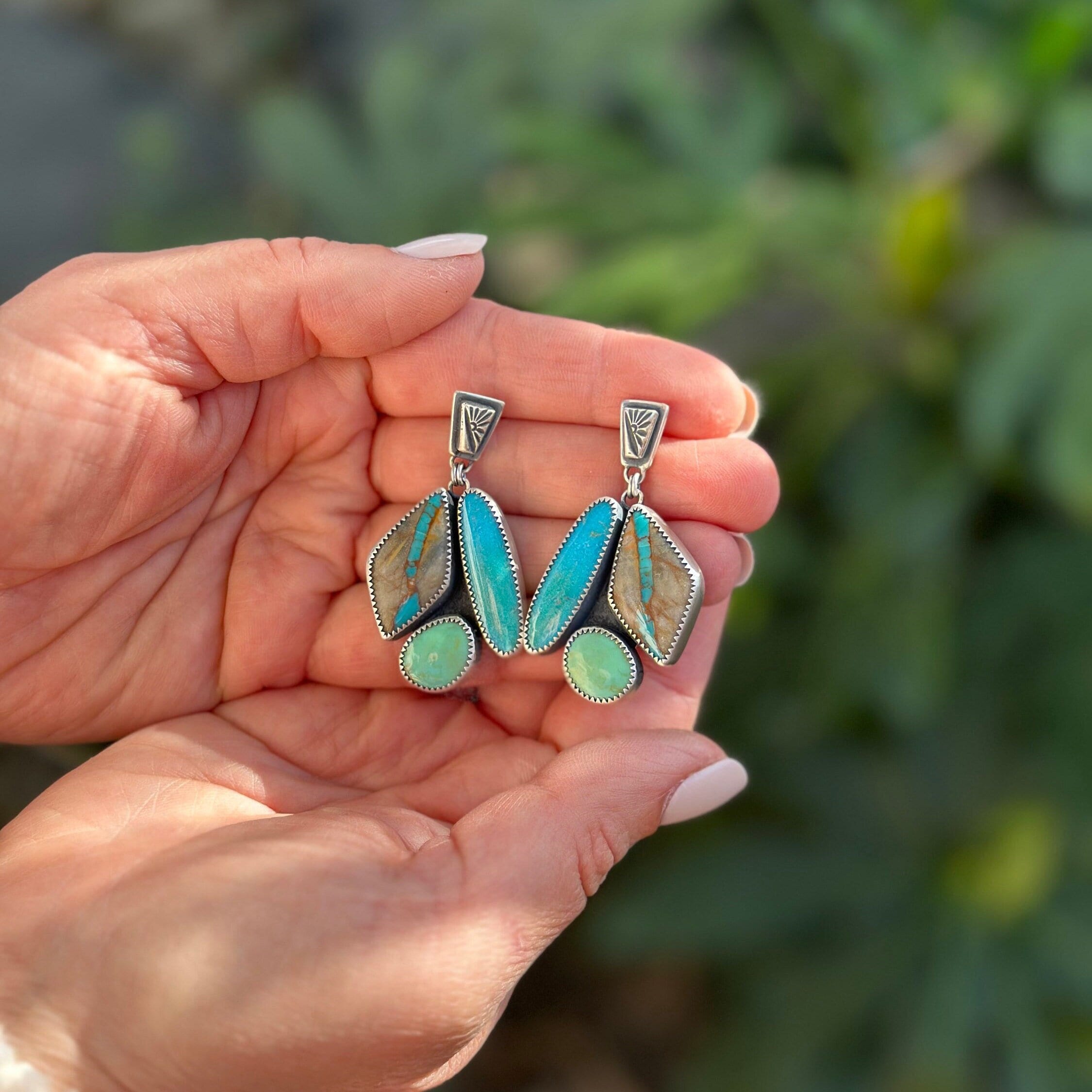 They feature a trio of high grade Royston Ribbon and Kingman Turquoise.