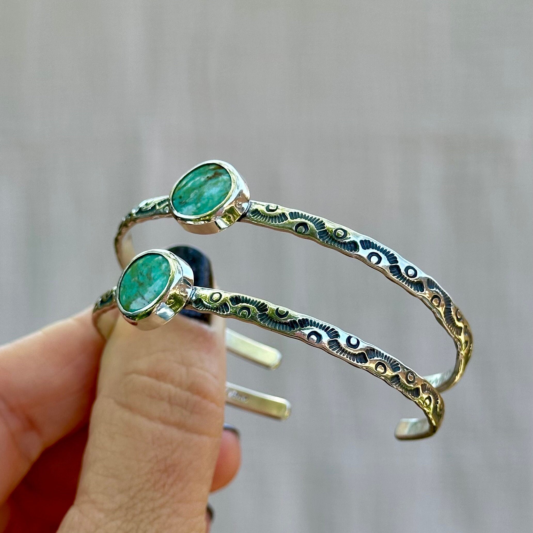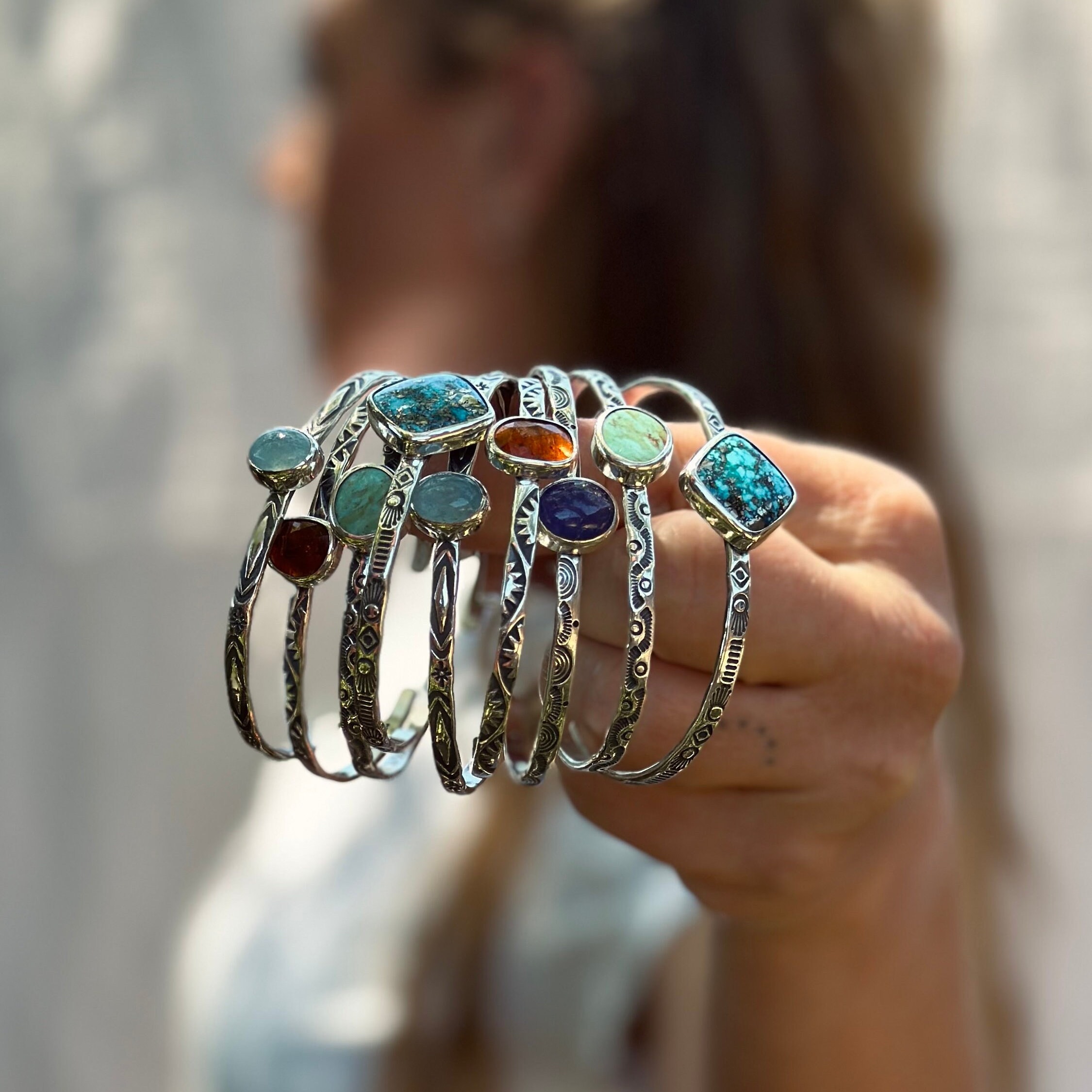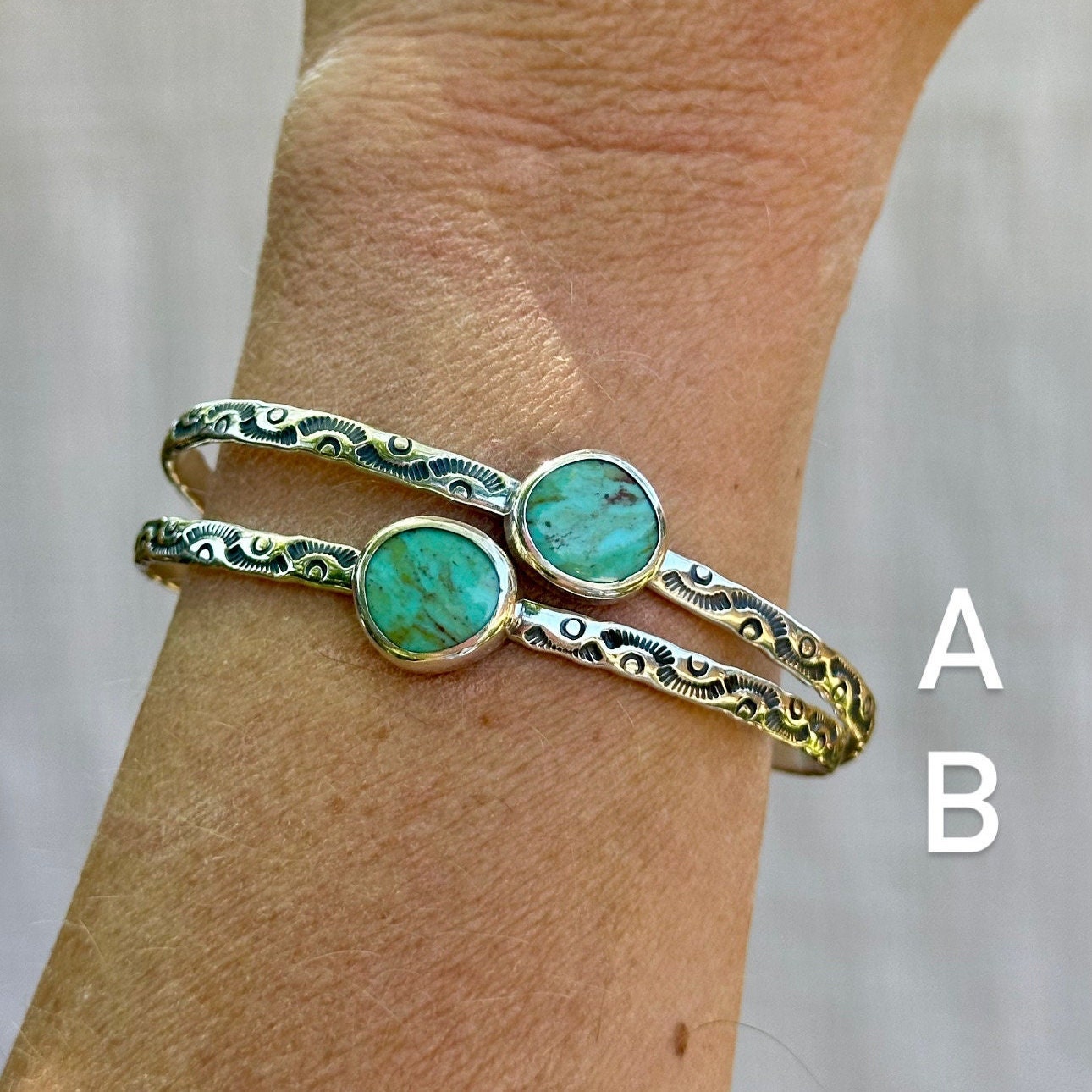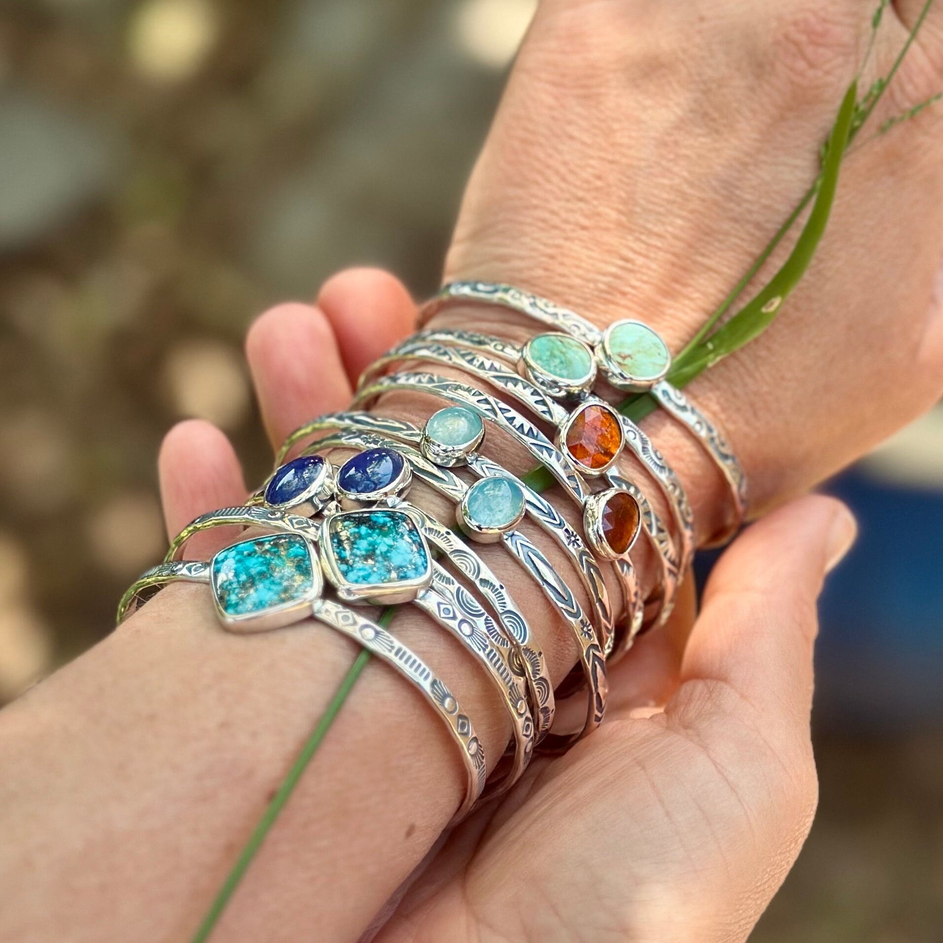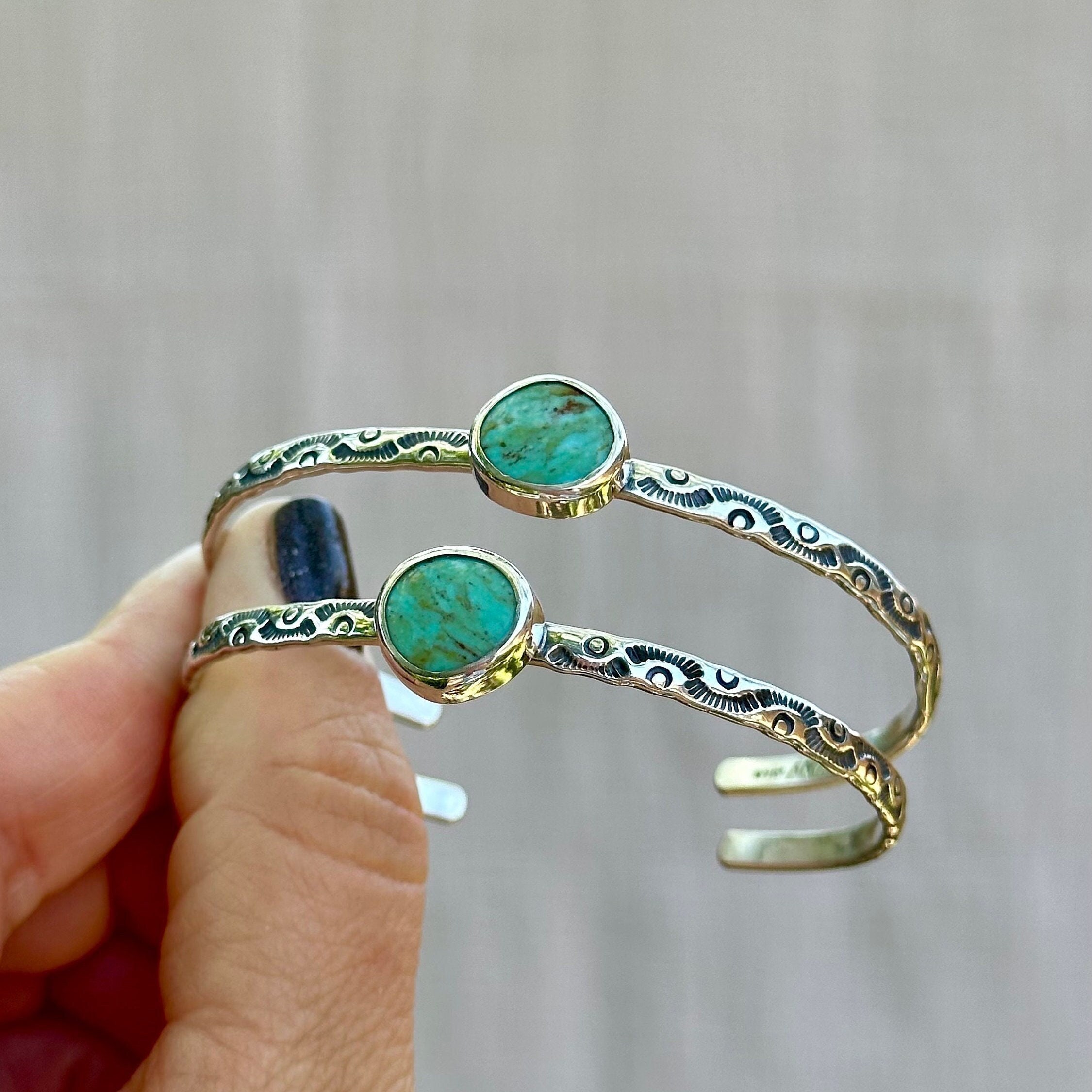 This stacking cuff features a gorgeous Kingman Turquoise stone!