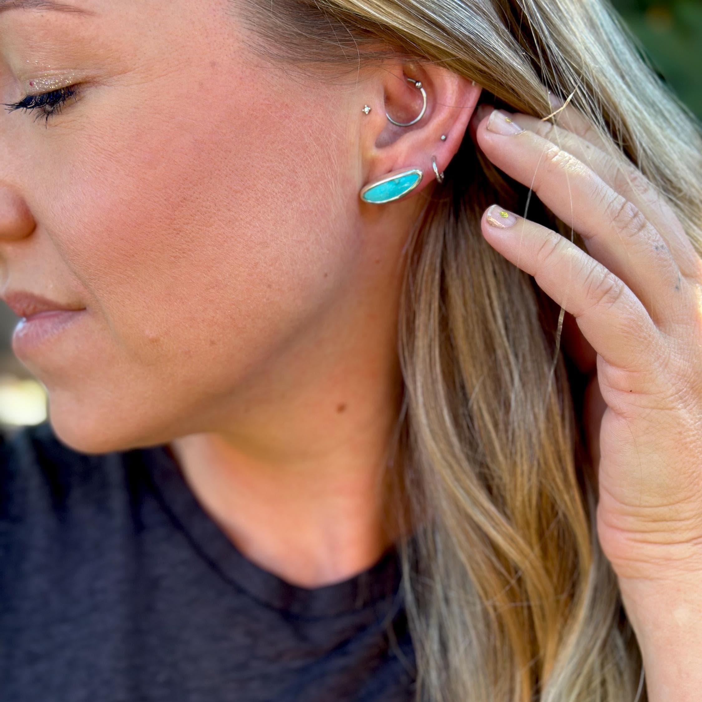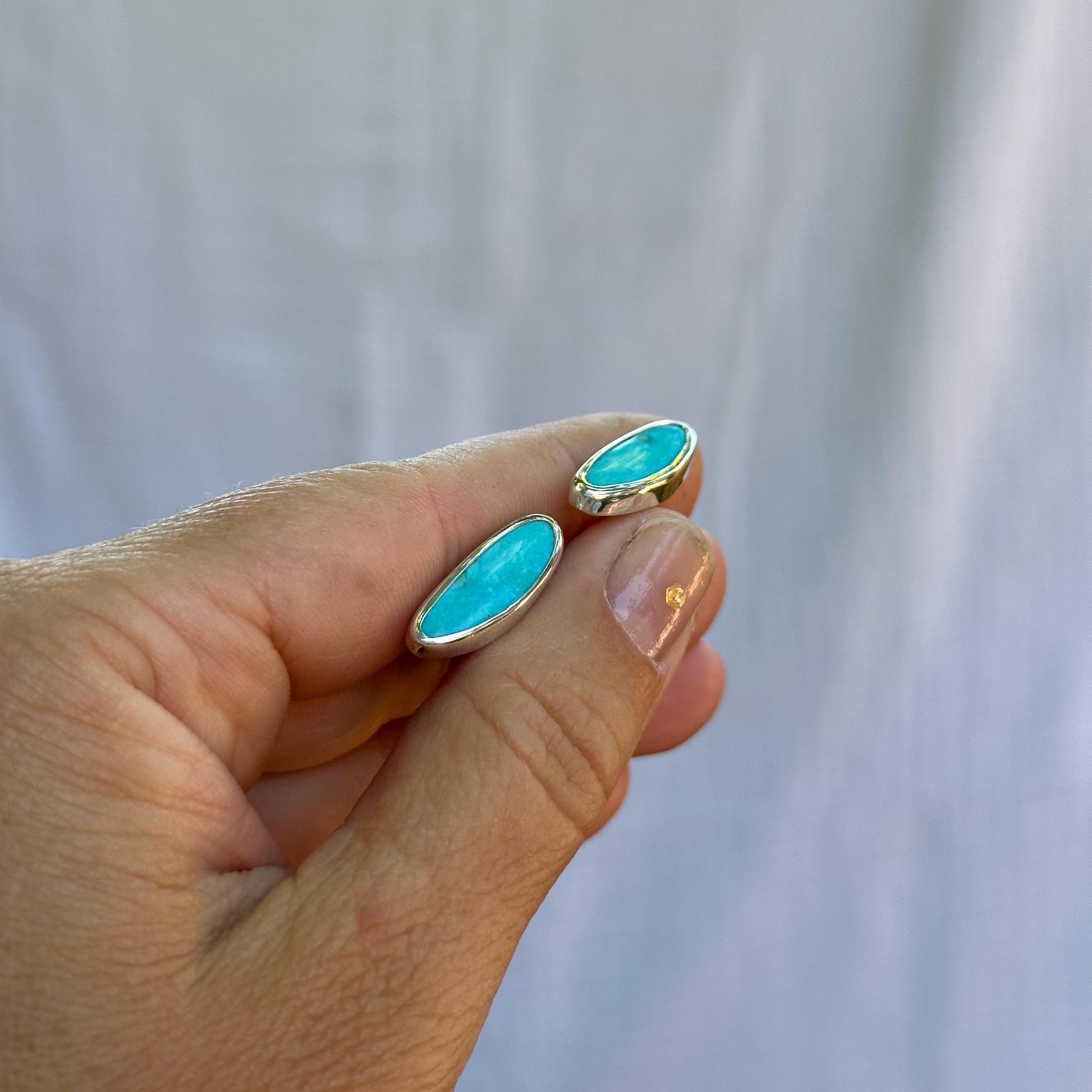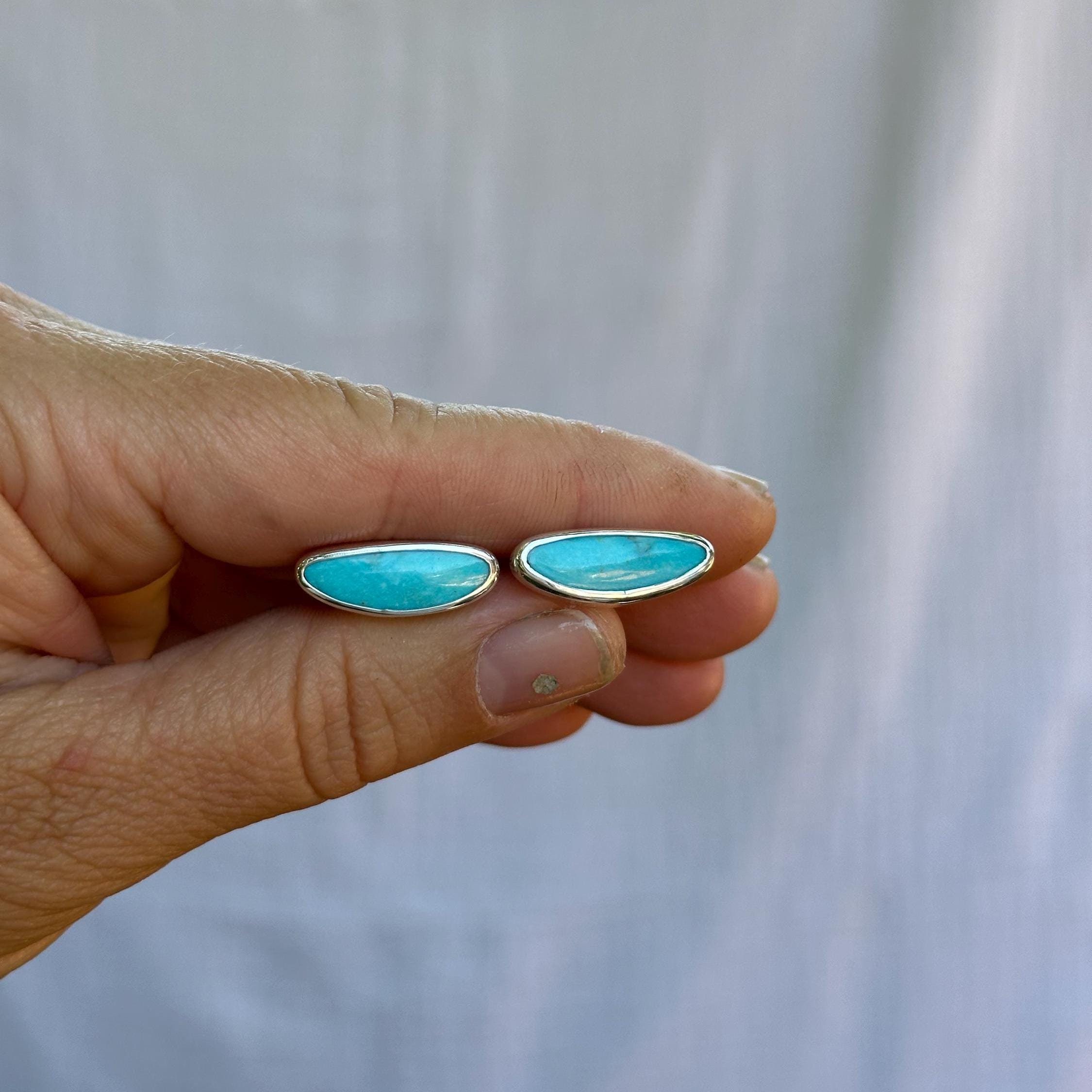 Simple everyday bright blue Kingman Turquoise studs to be worn vertical along the earlobe! Each stud measures approximately 3/4" long.